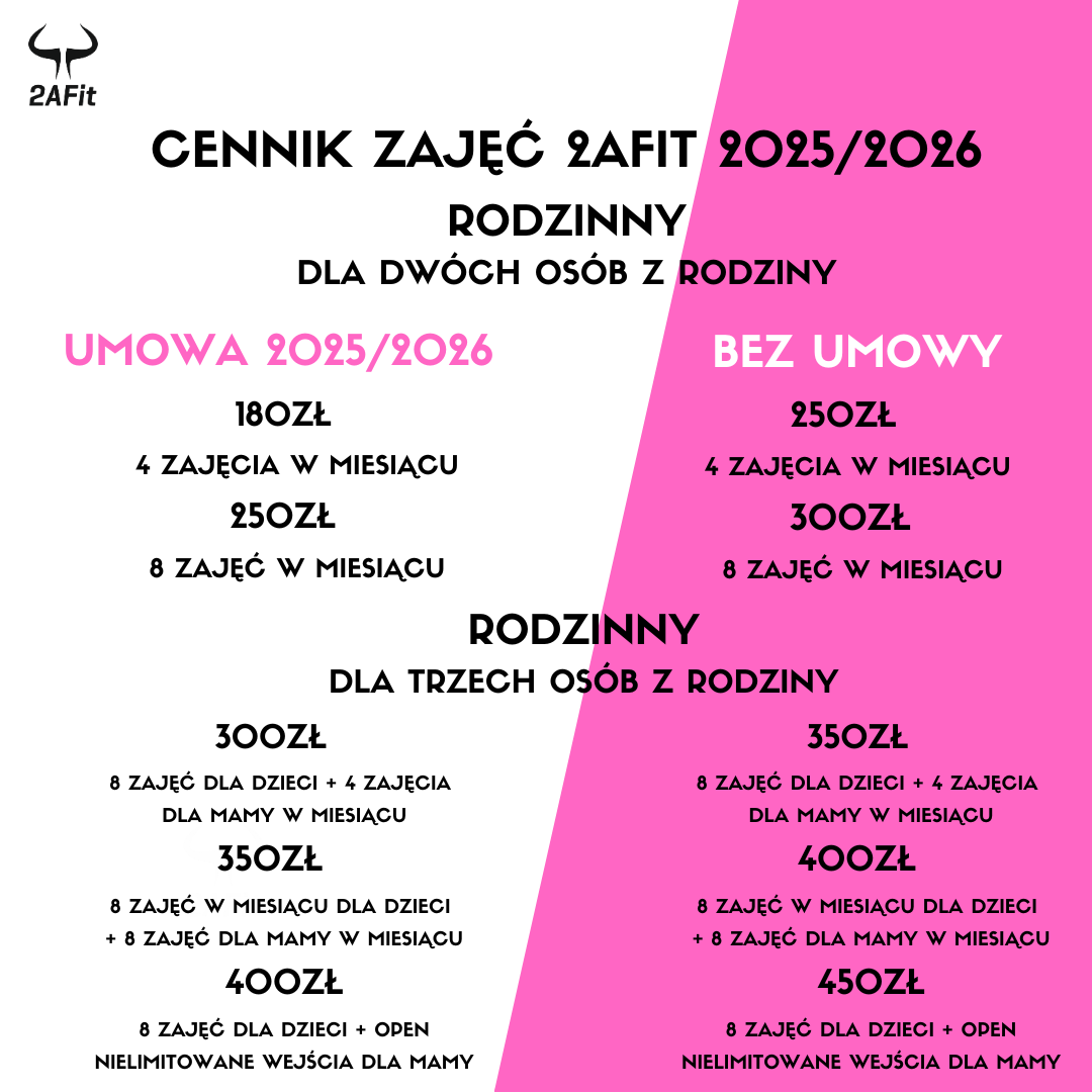 3. Karnet ważny jest przez jeden miesiąc abonamentu UMOWY 2025/2026 2AFit lub jednorazowo wykupiony karnet na miesiąc zajęć.