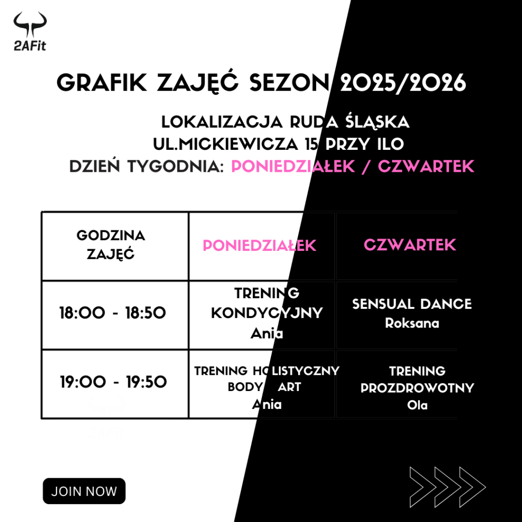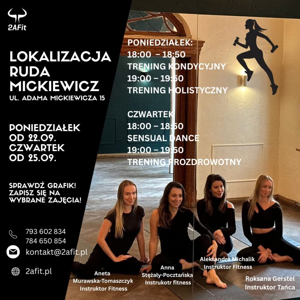 1. RUDA ŚLĄSKA MICKIEWICZ – zajęcia dla dorosłych w każdy PONIEDZIAŁEK I CZWARTEK, startujemy od poniedziałku 22.09.