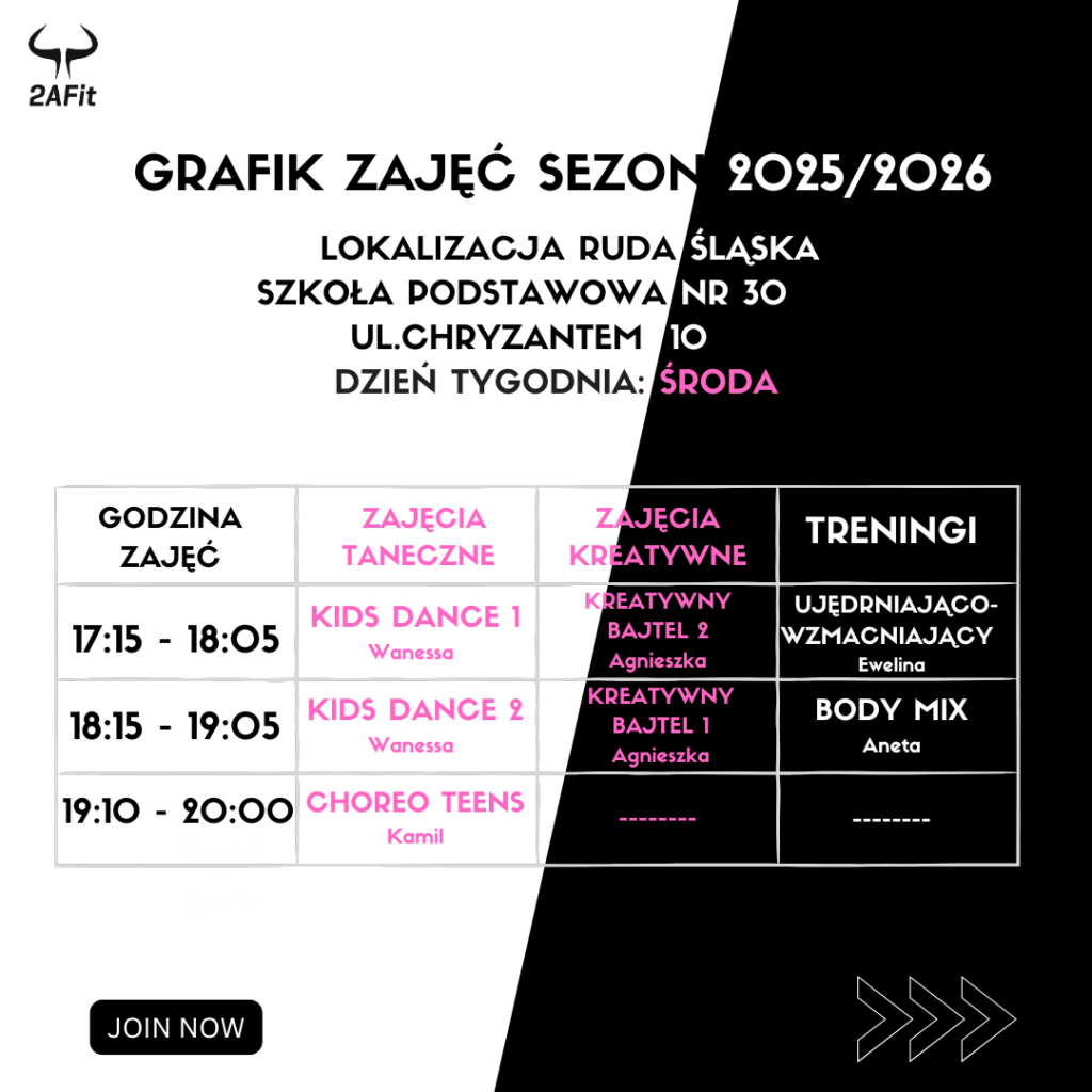Uwaga uruchamiamy grupę CHOREO TEENS 19:10 – 20:00 Zapisy do końca września. Po uzbieraniu grupy zajęcia ruszają z początkiem października 2025r.