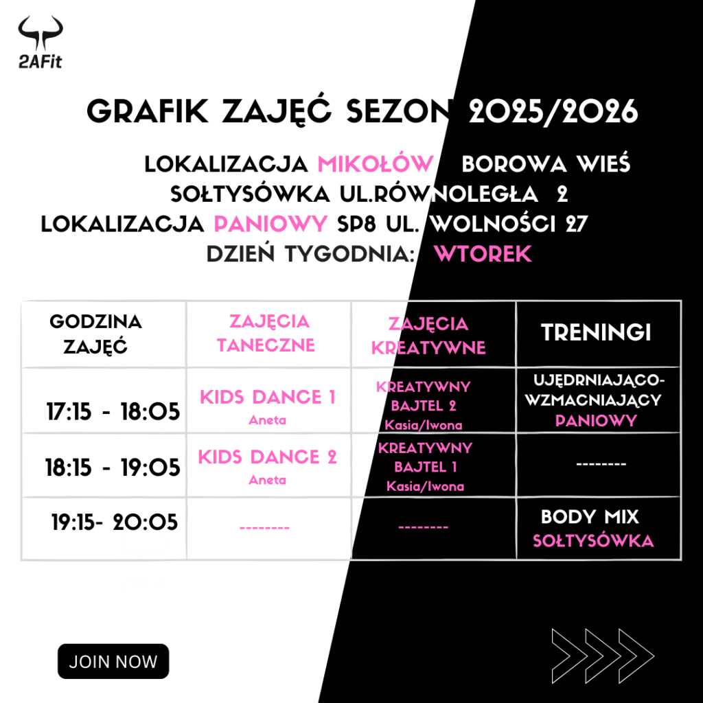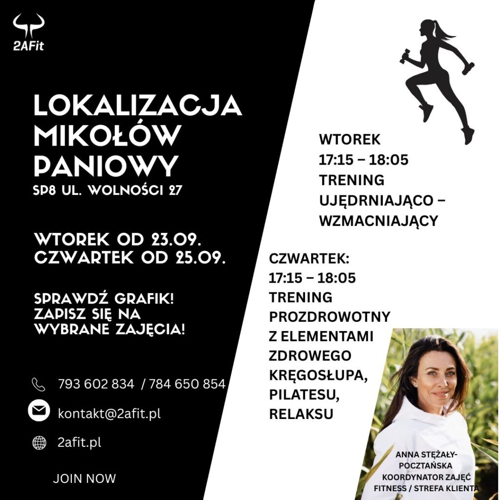 2. Przy zgłoszeniu podajemy, tytuł wiadomości NOWY SEZON 2AFIT z wiadomością zawierającą: imię i nazwisko zainteresowanego zajęciami (swoje lub dziecka), wybrane zajęcia, lokalizacja, wiek dziecka oraz telefon kontaktowy